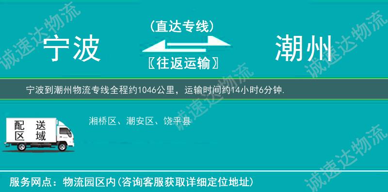 寧波到潮州物流專線是誠速達(dá)物流從寧波發(fā)往至潮州的物流貨運專線,天天發(fā)車二到三天即可抵達(dá),潮州可送貨的范圍包括: 湘橋區(qū)、饒平縣、潮安區(qū)、。